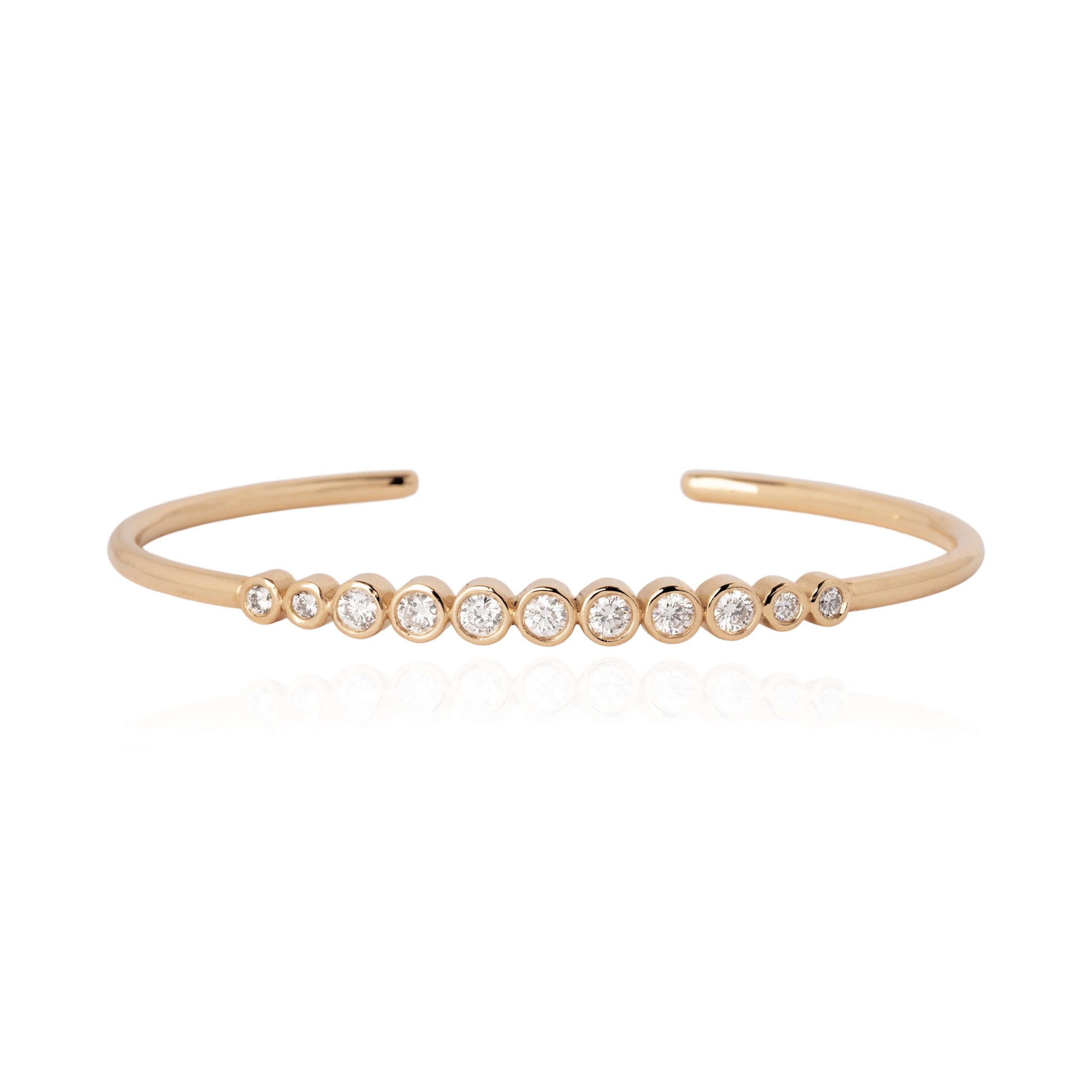 En klassiker er det her bøjlearmbånd, armbåndet er så smukt med den fine række af smukke brillanter.