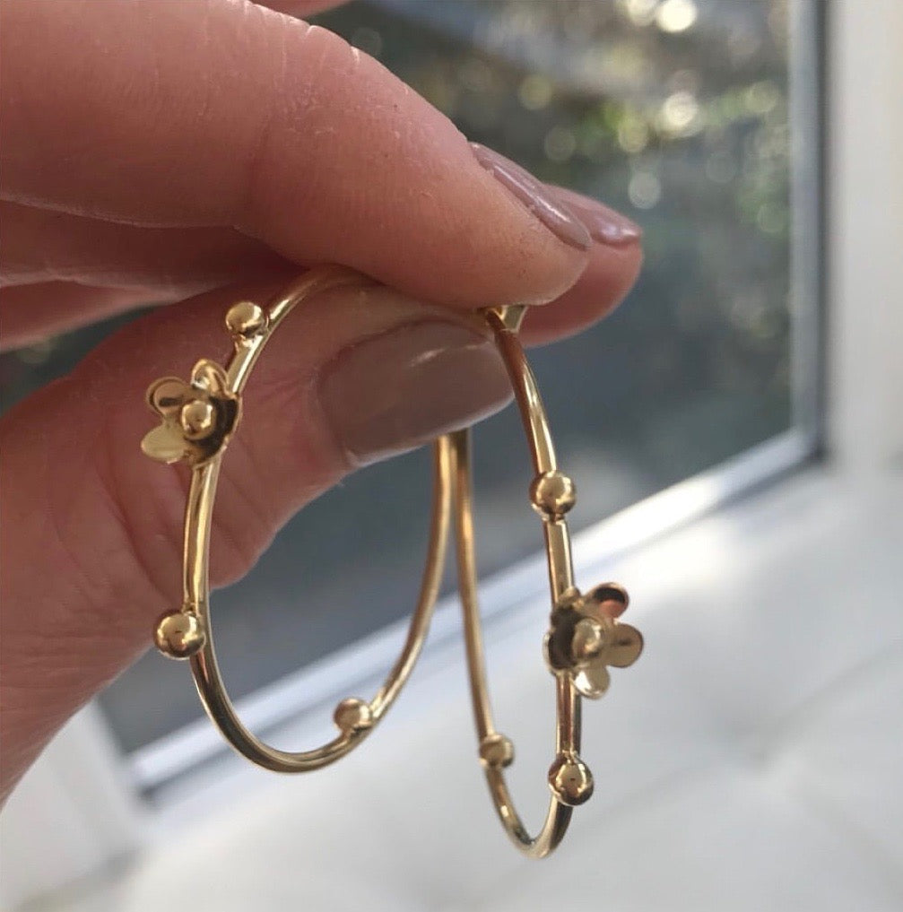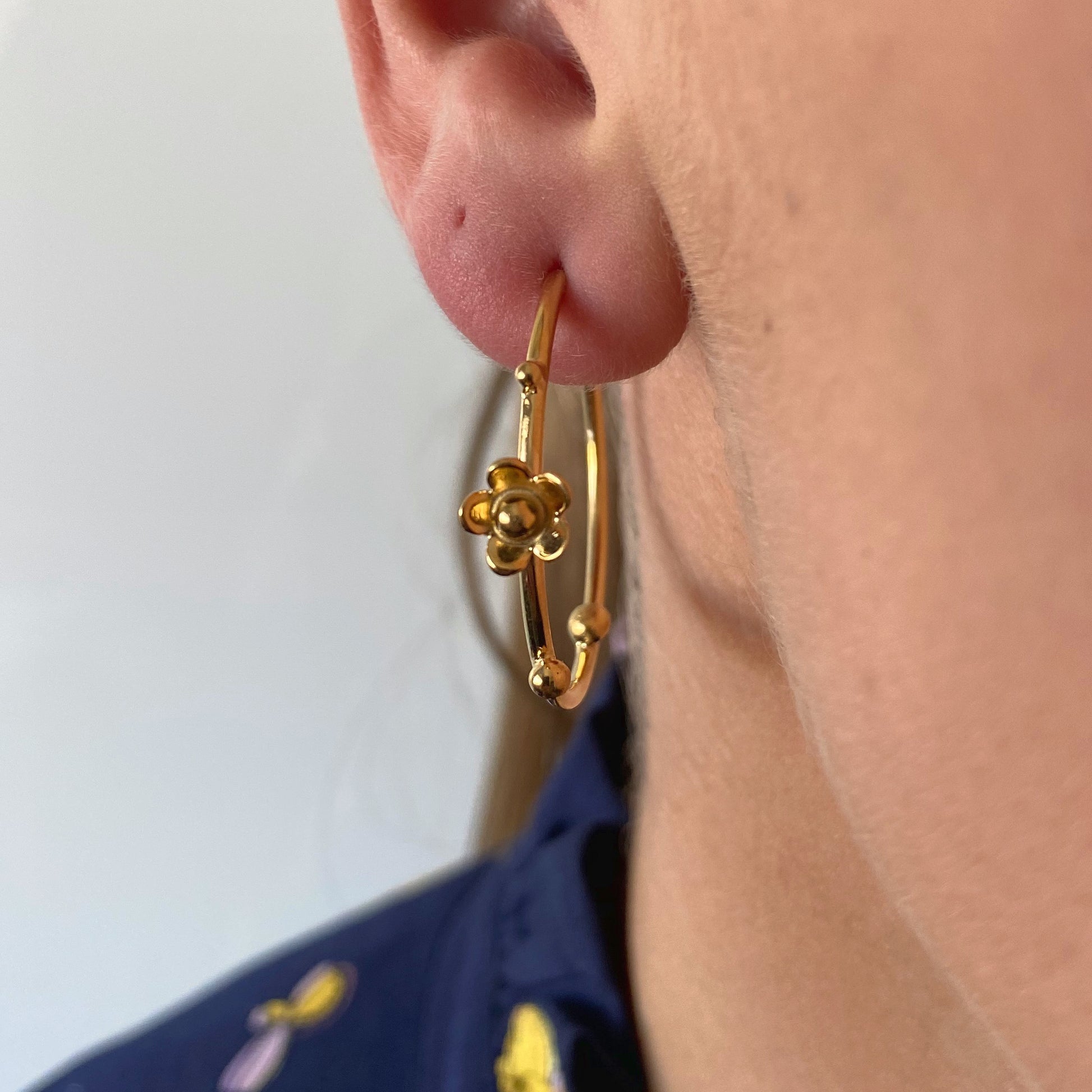 Øreringende fås i 14 karat guld eller sølv forgyldt med 24 karat guld.