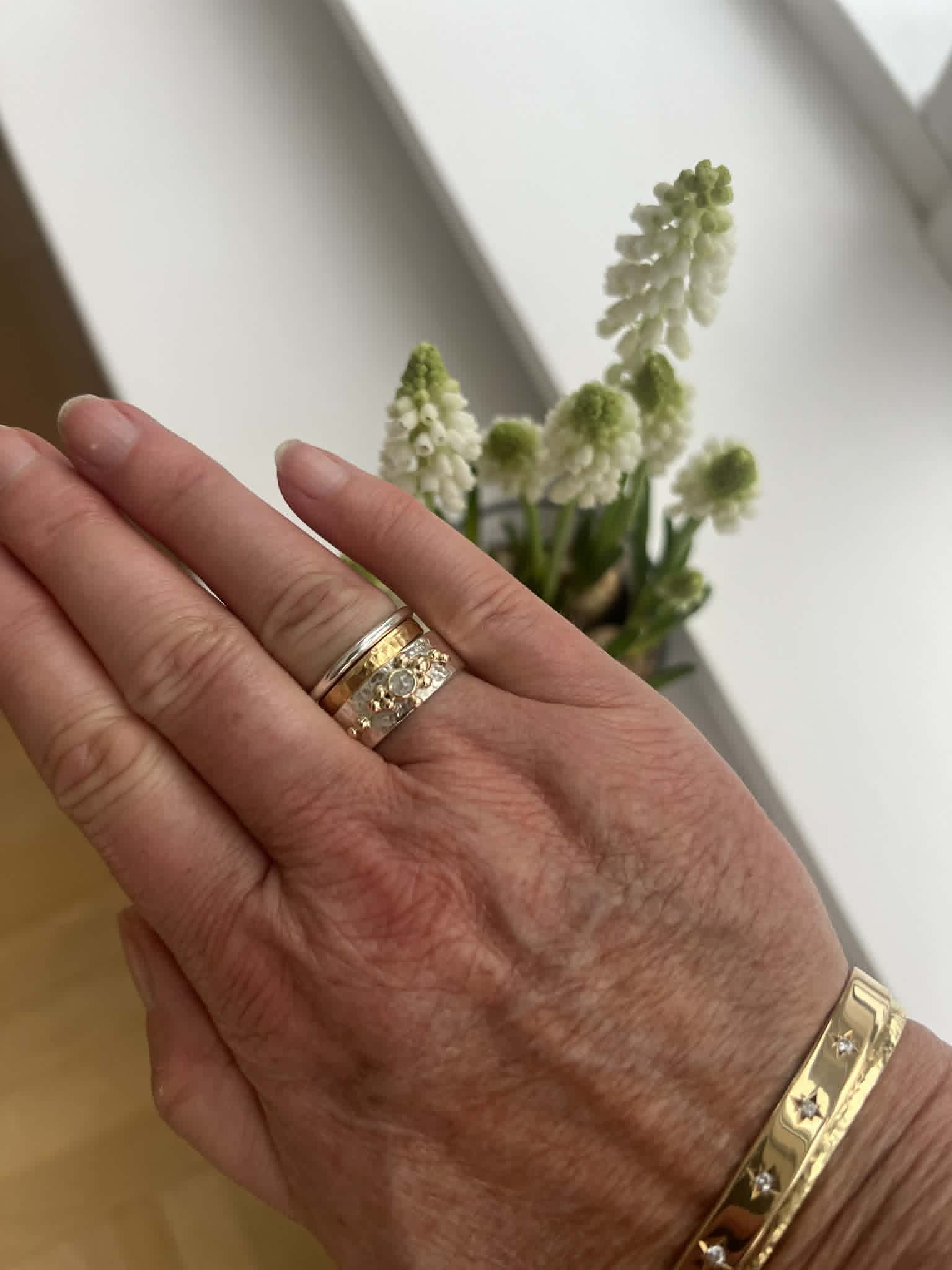 Hver ring fremstilles i hånden ved bestilling.