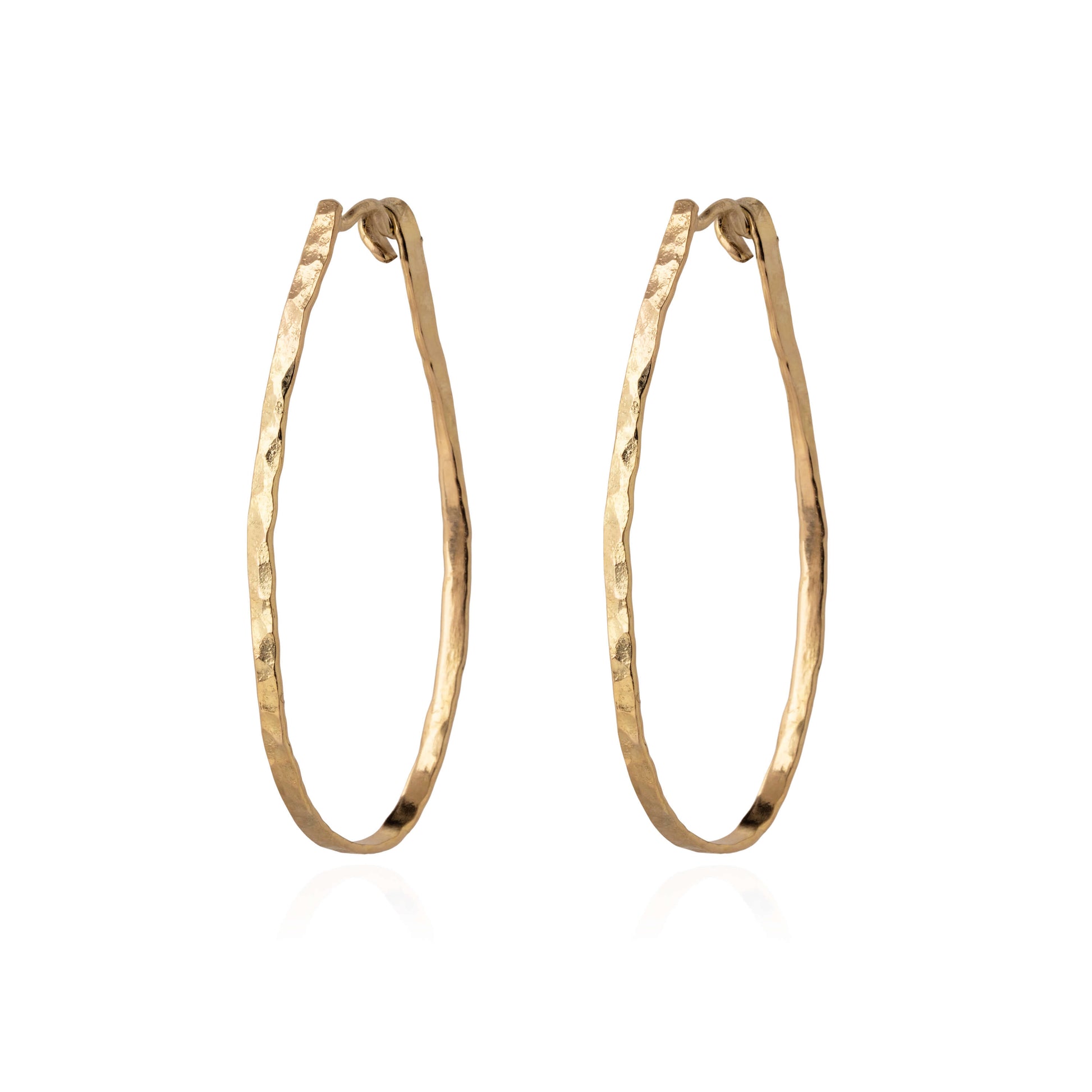 Et par helt skønne hammerslået øreringe, der er ovale og har en smuk struktur, øreringe er i 14 karat guld.